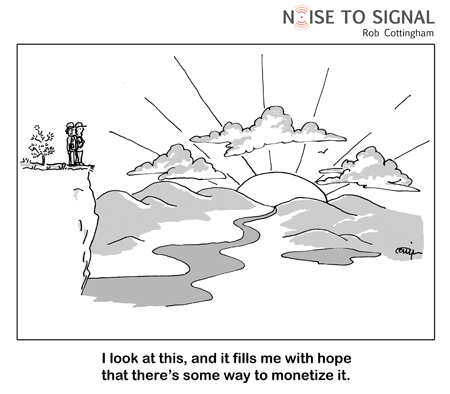 You’ve seen them on The Huffington Post, ReadWriteWeb, PC World and Treehugger. Now see Noise to Signal cartoons on your own wall.